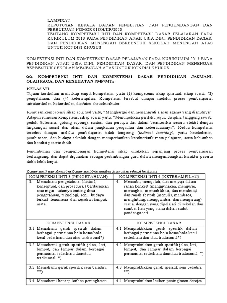 Keputusan Kepala Badan Penelitian Dan Pengembangan Dan Perbukuan Nomor 018/H/Kr/2020 Pdf - 8 8 Kurikulum Derurat Covid 19 Pjok - Download keputusan balitbangbuk nomor 018/h/kr/2020 tentang ki dan kd untuk kondisi khusus.. Download keputusan balitbangbuk nomor 018/h/kr/2020 tentang ki dan kd untuk kondisi khusus. Materi kelas 10 dan 11 sesuai dengan permendikbud no 37 tahun 2018 tentang perubahan atas peraturan menteri pendidikan dan kebudayaan nomor 24 tahun 2016 tentang kompetensi inti dan kompetensi dasar pelajaran pada kurikulum 2013 pada pendidikan dasar dan pendidikan menengah, materi kelas 12 sesuai dengan surat keputusan kepala badan penelitian. Lampiran keputusan kepala badan penelitian dan pengembangan dan perbukuan nomor 018/h/kr/2020 type : Merujuk keputusan kepala badan penelitian dan pengembangan dan perbukuan nomor 018/h/kr/2020 tentang kompetensi inti dan kompetensi dasar pelajaran pada kurikulum 2013 pendidikan anak usia dini, pendidikan dasar, pendidikan menengah berbentuk sekolah menengah atas untuk kondisi khusus. Untuk melaksanakan kebijakan mengenai kurikulum yang sesuai dengan kebutuhan pembelajaran bagi peserta didik dalam kondisi khusus berdasarkan keputusan menteri pendidikan dan kebudayaan nomor 719/p/2020 tentang pedoman pelaksanaan kurikulum pada satuan pendidikan dalam kondisi khusus, perlu ditetapkan keputusan kepala badan penelitian dan pengembangan dan perbukuan tentang kompetensi inti dan.