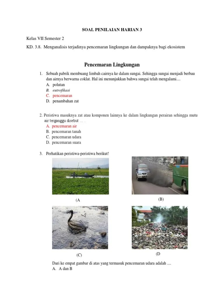 Ipa biologi 1 smp dan mts untuk kelas vii. Menganalisis upaya penanggulangan pencemaran udara. Pengertian biologi dan 19 cabang ilmu biologi · keanekaragaman hayati · klasifikasi mahluk hidup · virus . Soal pencemaran lingkungan kelas 7 merupakan pelajaran tentang ilmu ipa yang wajib bagi sekolah dasar smp mts baik di sekolah negri maupun . Soal nomor 1 peristiwa berikut yang berperan dalam mengubah ekosistem di muka bumi adalah.
